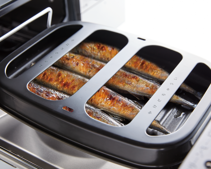 調理物の量に応じて絶妙な火加減と焼き時間を自動で調節して焼き上げます。